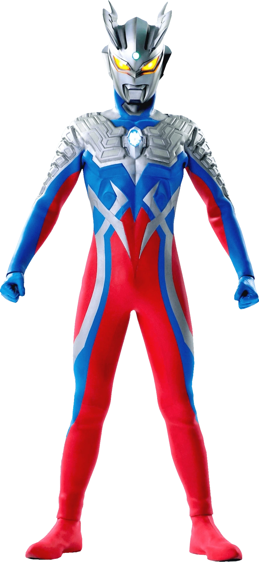 Zero's natural appearance. A red and blue Ultraman from the Land of Light. He is well-versed in combat and specializes in intense fighting techniques.